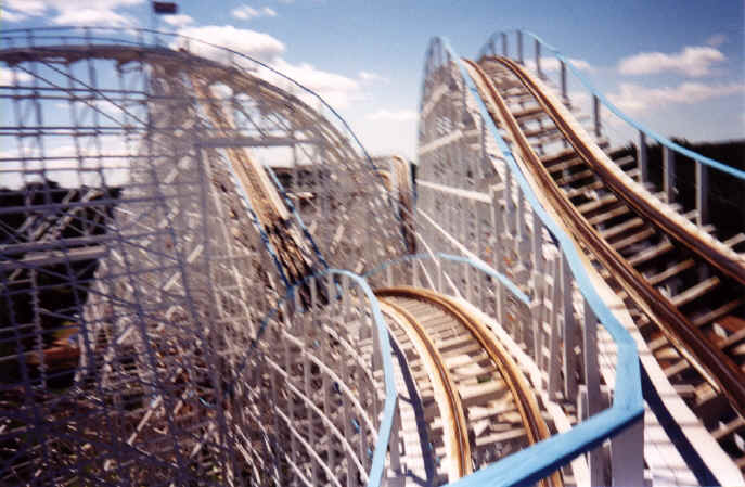 The train is going towards the track on the right for the 2nd drop.